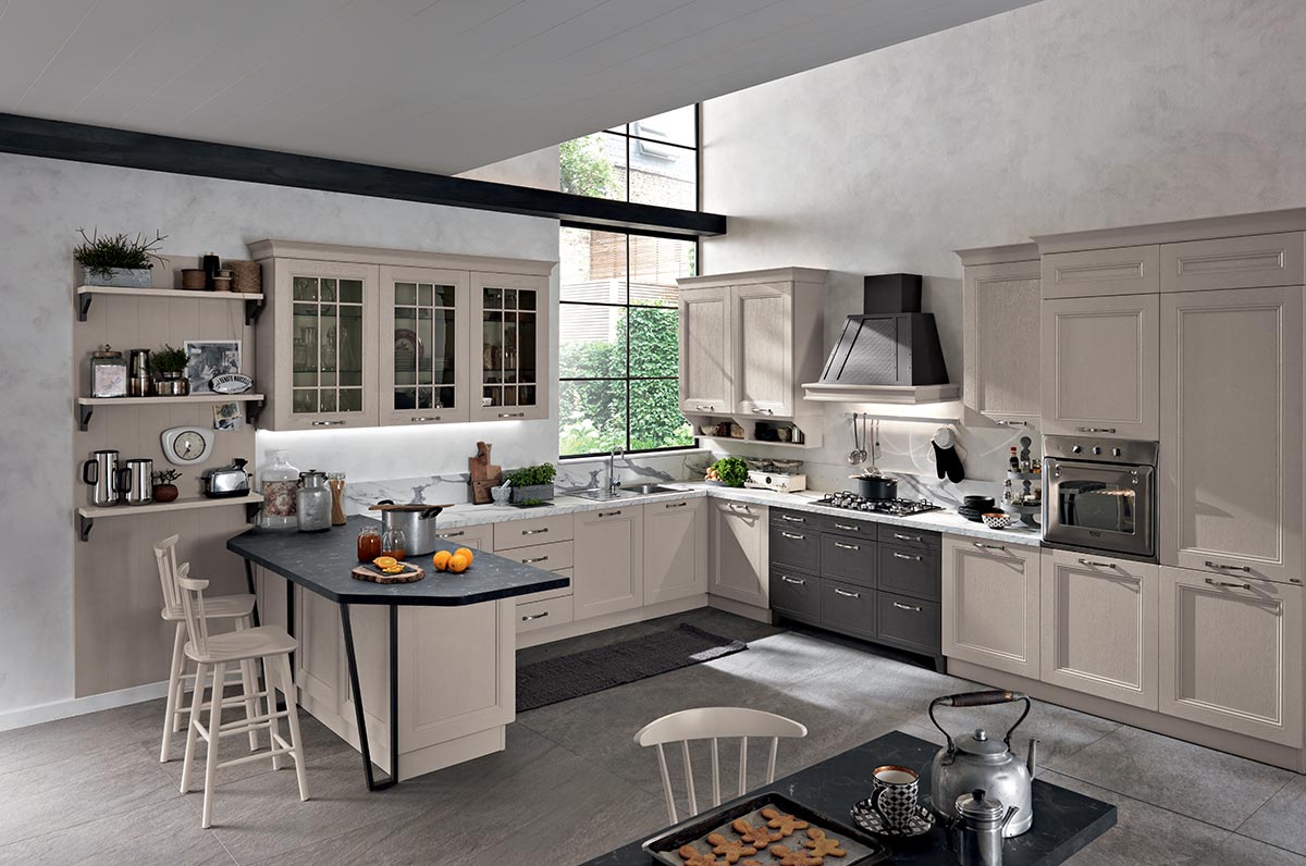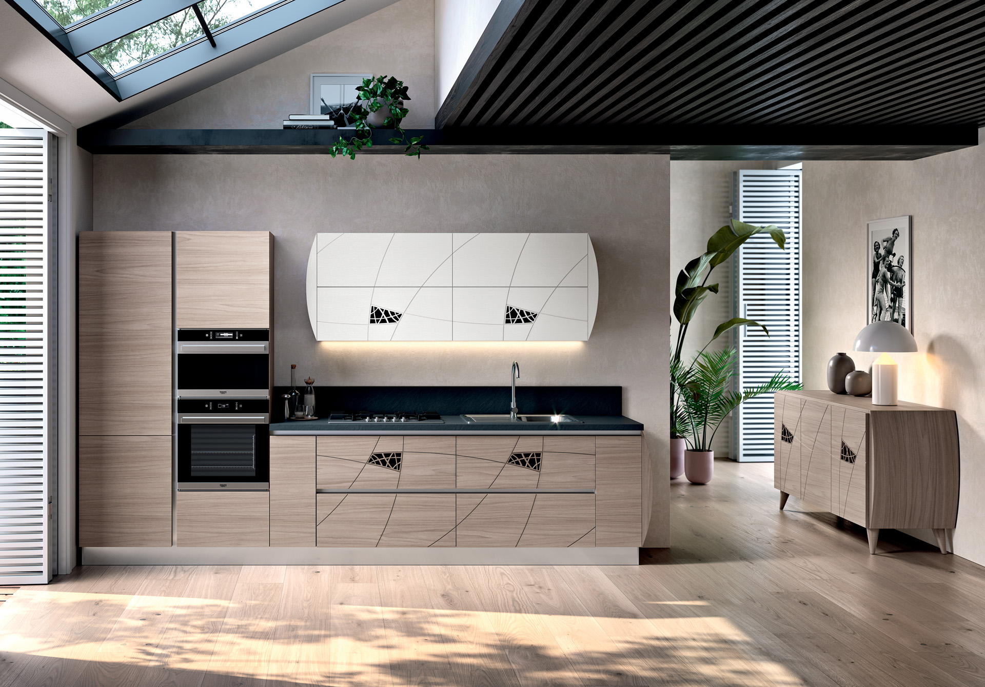 DIEMME CUCINE Una soluzione contemporanea elegante.Un progetto cucina che sa coniugare tradizione e innovazione, arricchito da idee come le armadiature, eleganti e funzionali, il cui design riprende la tradizione delle madie.Un mix unico, che porta il classico oltre il presente.